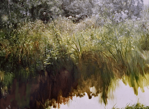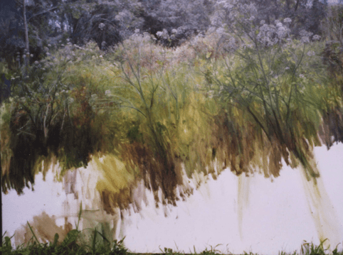 The identity of one’s subject matter is a lifelong quest, inseparable from the development of technique. Working always in natural settings that continually change invites succinct, focused response. Individual leaves and grass-blades, which for some painters would seem distracting details, are, for me, part of the subject and integral to the compositional structure.