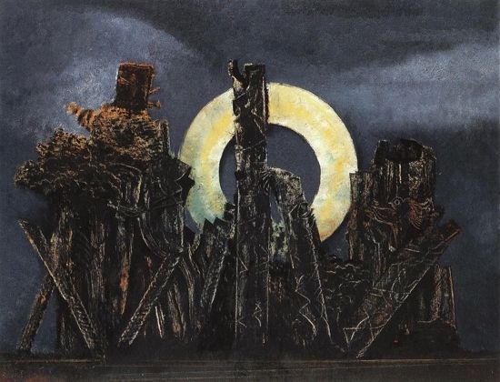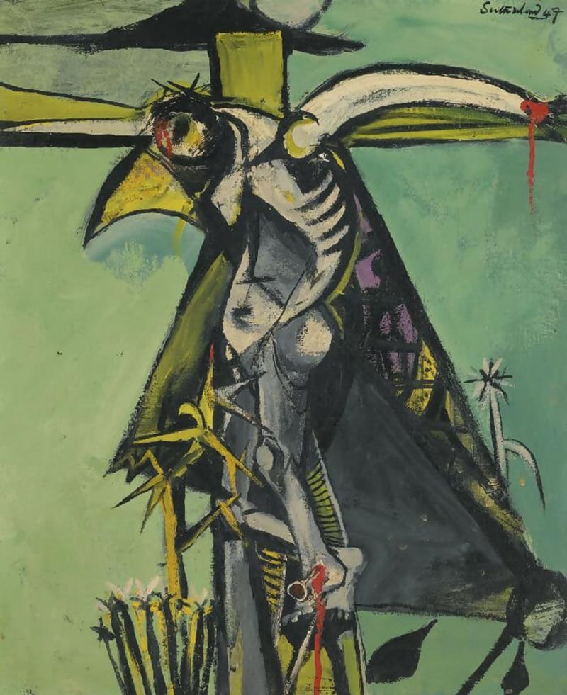 As well as abstraction and Picasso, it was the visionary work of Blake and Palmer which influenced the work of many British painters in the early 20th C, including such ‘Neo-romantics’ as Graham Sutherland, Paul and John Nash, and visionaries like Stanley Spencer. Francis Bacon and Lucian Freud too were aware of Blake’s importance. Like other British modernists with romantic leanings, they were also in awe of Albrecht Dürer’s great contemporary, Matthias Grünewald’s Isenheim Altarpiece, 1506-1515
