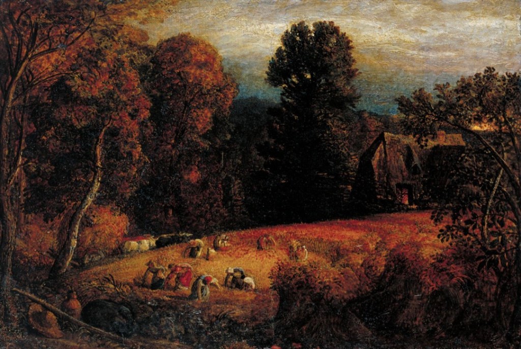 The 19 year old Samuel Palmer met William Blake in 1824. Possibly the best, written description of his own compositions is Palmer’s response to William Blake’s woodcuts of scenes from Virgil: “They are visions of little dells, and nooks, and corners of Paradise; models of the exquisitest pitch of intense poetry. I thought of their light and shade, and looking upon them I found no words to describe it. Intense depth, solemnity, and vivid brilliancy only coldly and partially describe them. There is in all such a mystic and dreamy glimmer as penetrates and kindles the inmost soul, and gives complete and unreserved delight, unlike the gaudy daylight of this world. They are, like all that wonderful artist’s work the drawing aside of the fleshly curtain, and a glimpse of that rest which remaineth to the people of God.” (Life and Letters of Samuel Palmer A.H. Palmer 1892)