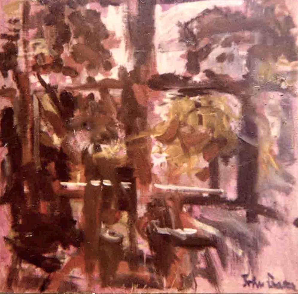 At art college in the 1960s, it would have been impossible to ignore the American abstract expressionists, and artists like John Hoyland, who now and again tutored at Hornsey, made sure we didn’t. Finding myself bereft of my formerly insistent ‘visionary’ instinct, I identified with the performative element in Jackson Pollock’s work – (‘in the moment’) and found the vibrant presence of his large canvases on the gallery wall enviable and compelling. This influenced some of the paintings I later did in Newcastle, though they were always on-the-spot responses to a subject or setting.