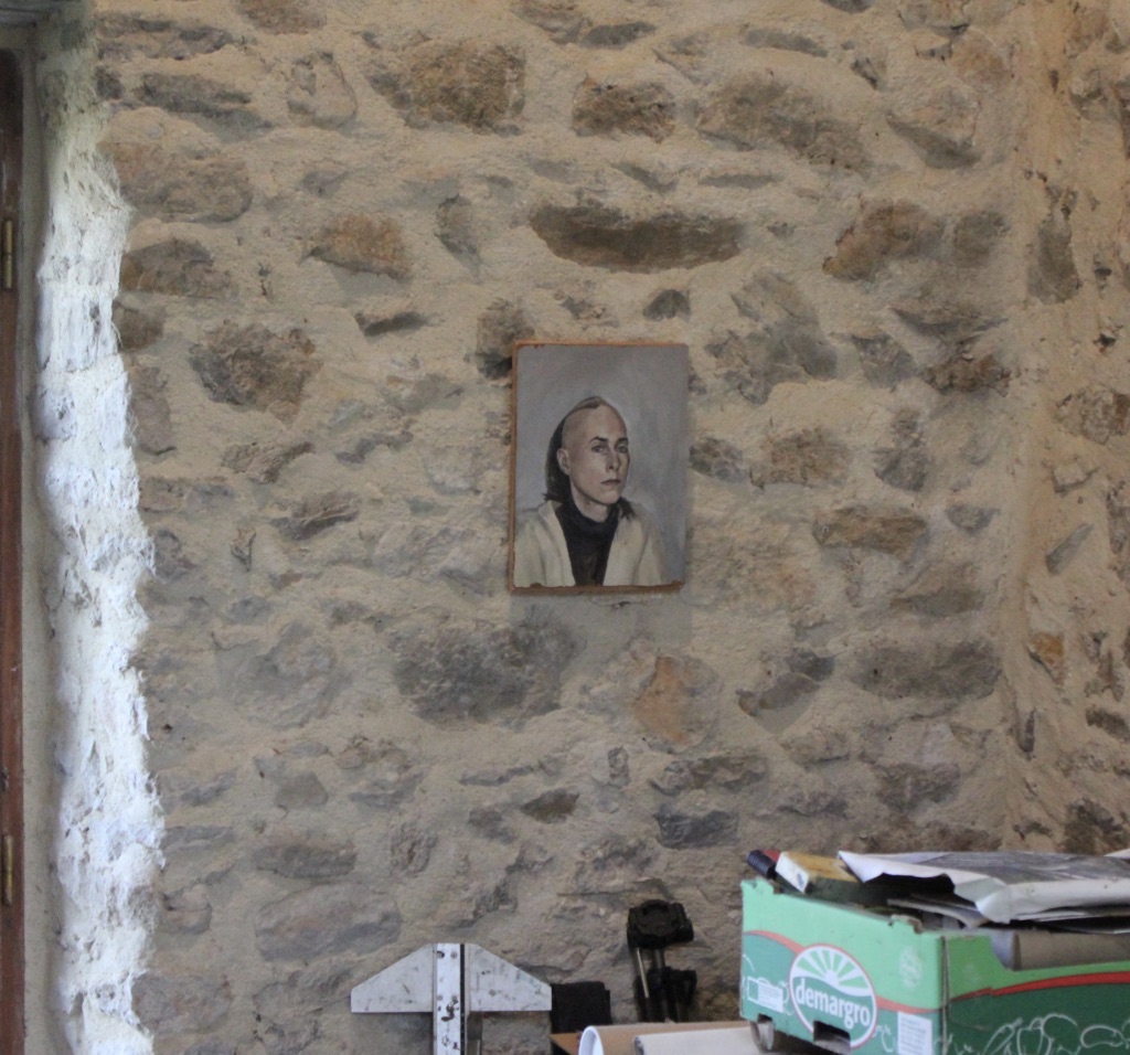 The exhibition continued on one wall at the Mairie at Orval Sur Sienne, where my 4’x3′ oil of Barry Long The Spiritual Teacher replaced a photo of President Emmanuel Macron. Two days earlier there had been a wedding in the Mairie, and the happy couple had demanded that the pictures be taken down.