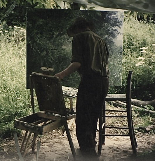 A still vivid memory: my surprise when, being in search of him, and knowing him to be somewhere near the buildings, I discovered him at the edge of the chestnut alley, immersed in the tall grass, under a small shelter, facing a green wall (his subject) armed with his canvas, his palette, his tubes and his brushes.