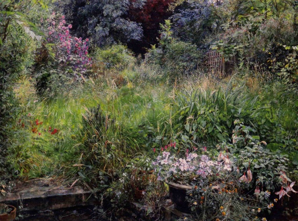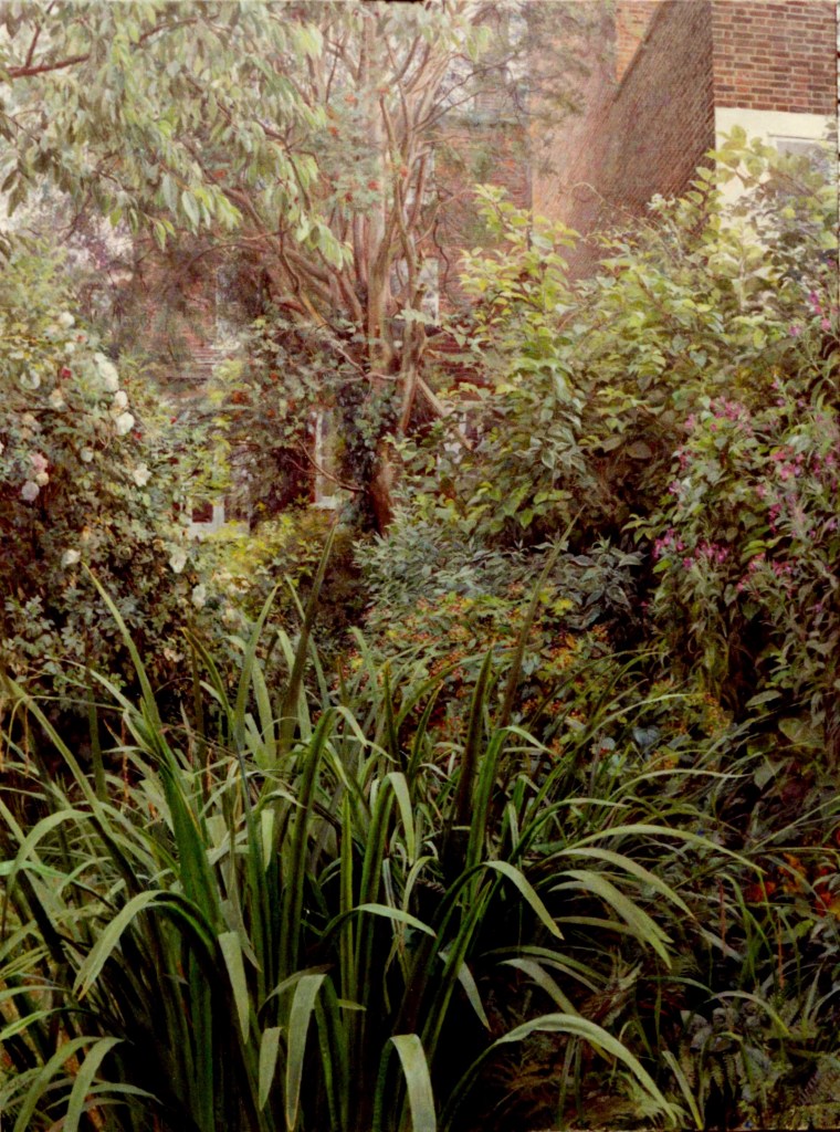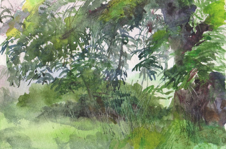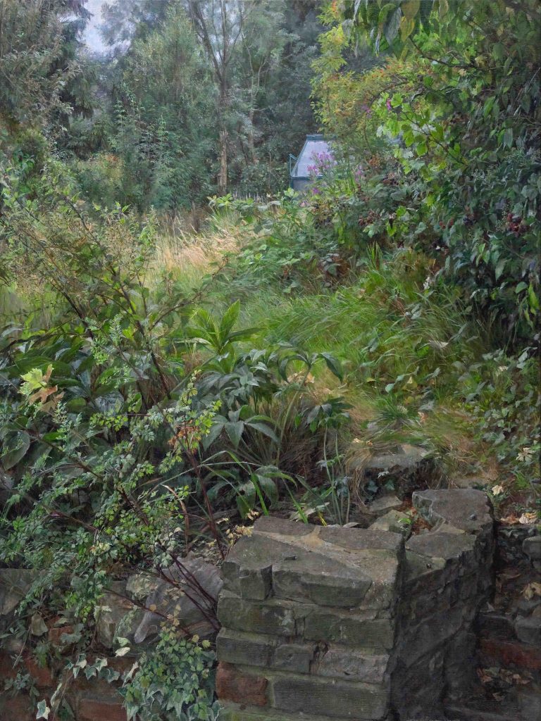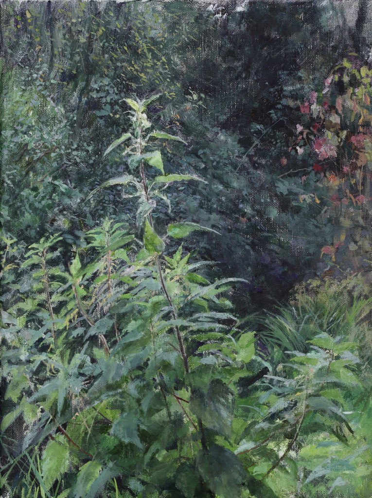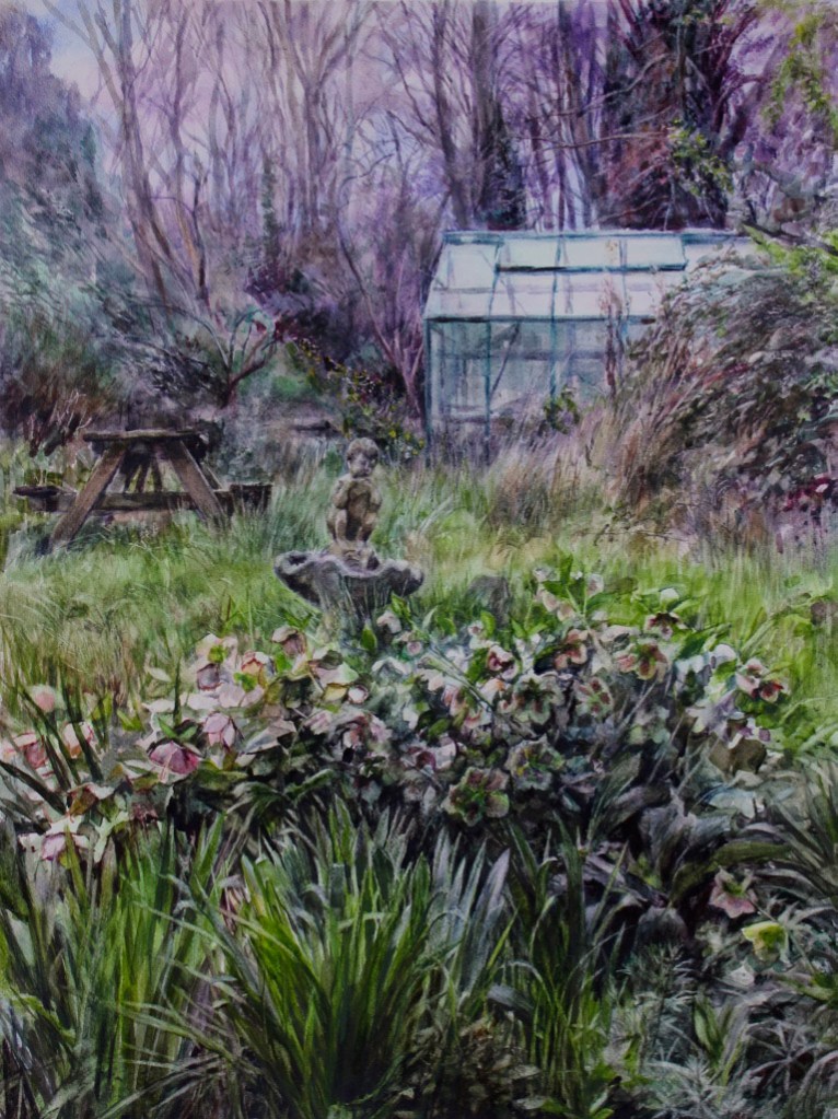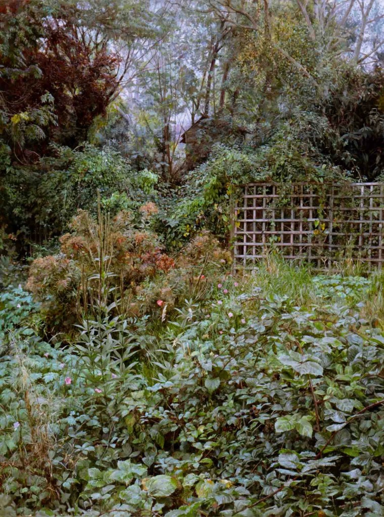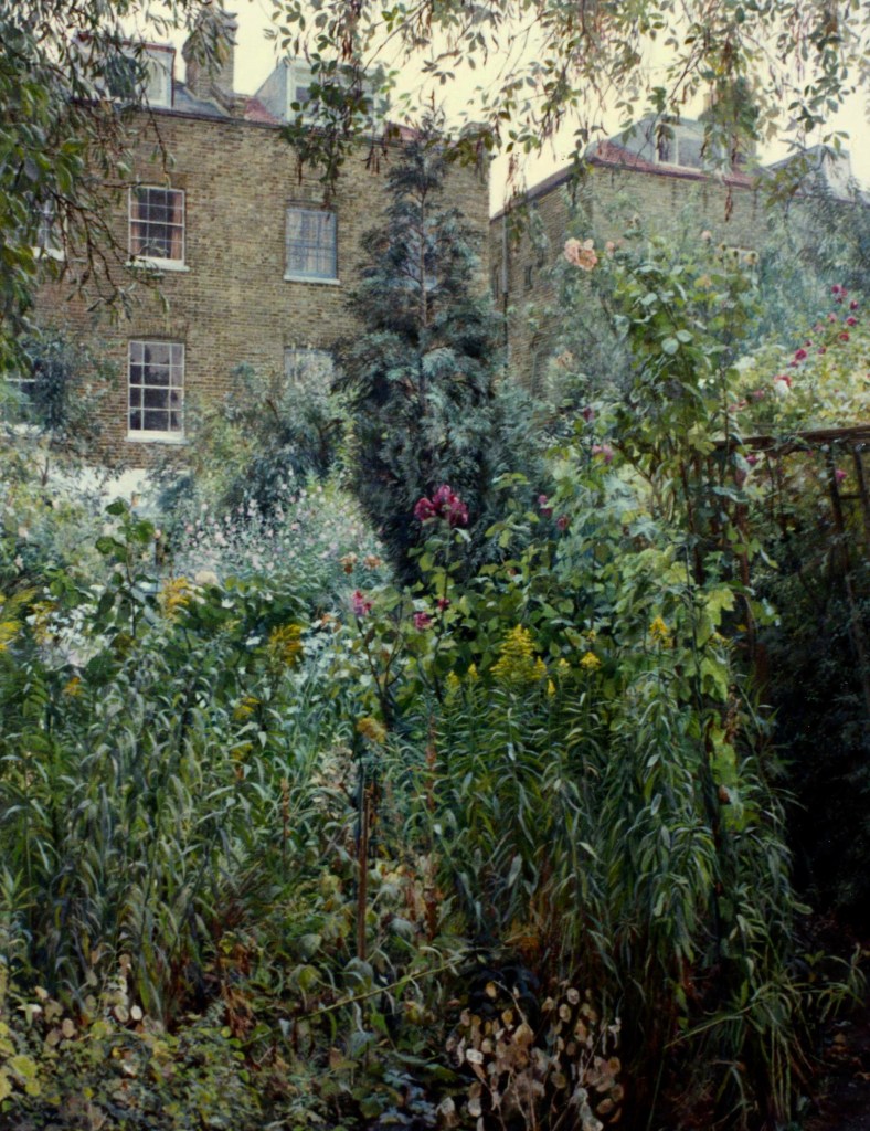 As a city dweller, the wildness of untended corners of urban gardens has attracted me as a source of significant subject matter. All the pictures in the selection below were painted in the gardens of friends, who have been prepared to put up with my presence on their properties, often for months on end, making these works possible.