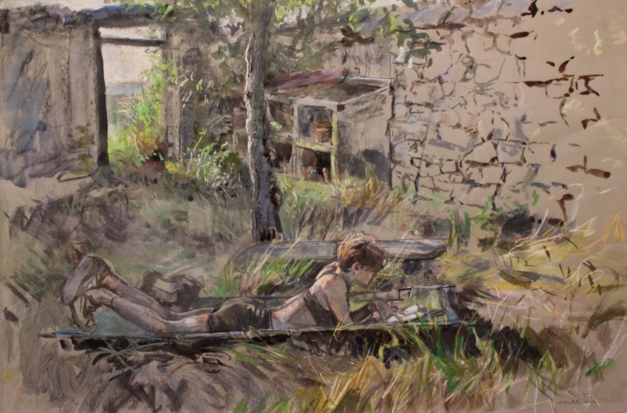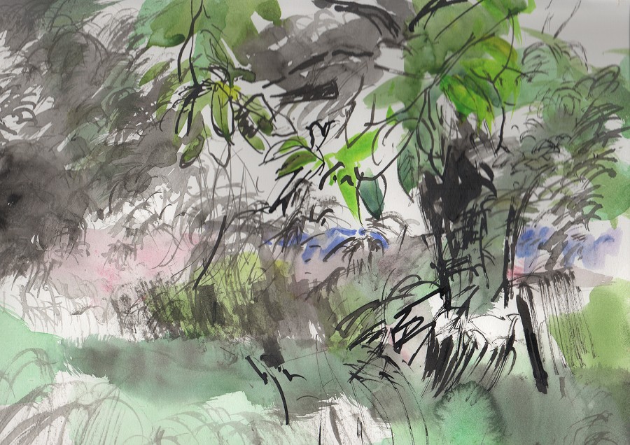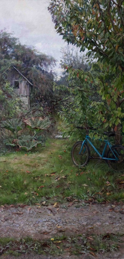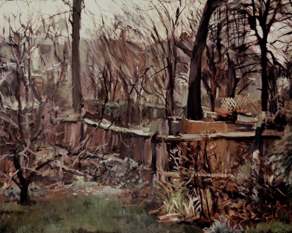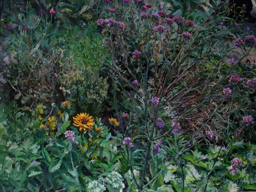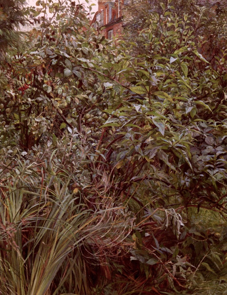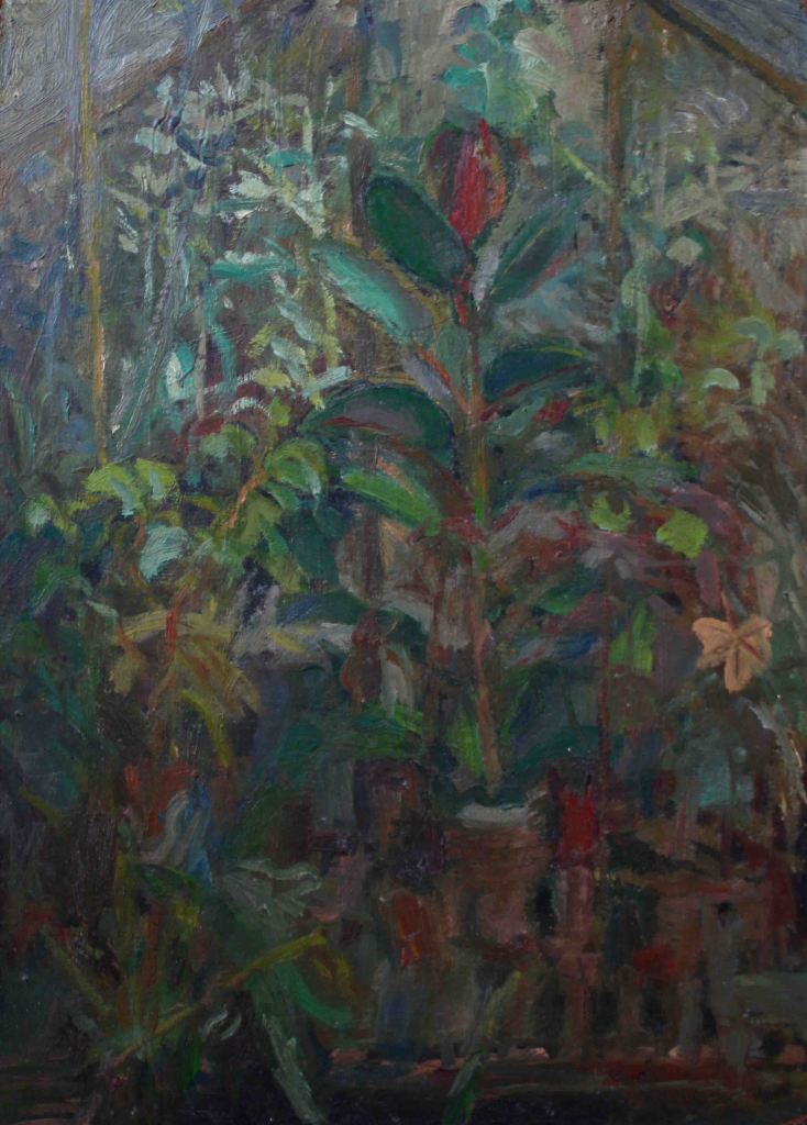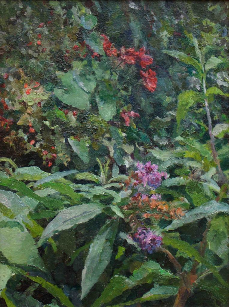 As a city dweller, the wildness of untended corners of urban gardens has attracted me as a source of significant subject matter. All the pictures in the selection below were painted in the gardens of friends, who have been prepared to put up with my presence on their properties, often for months on end, making these works possible.