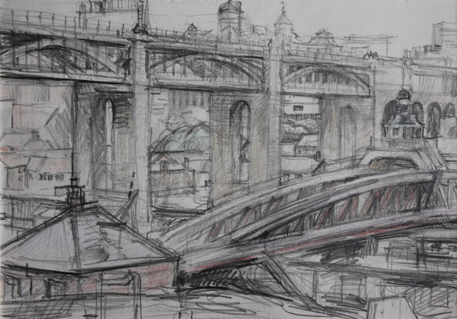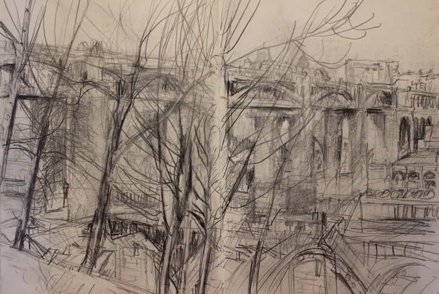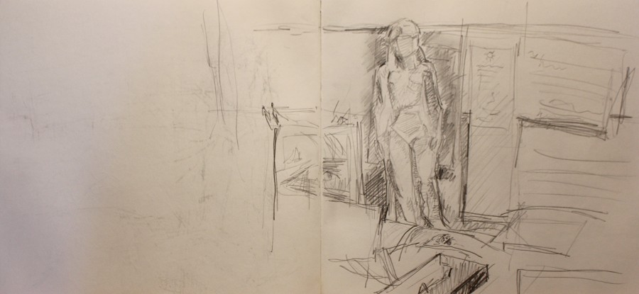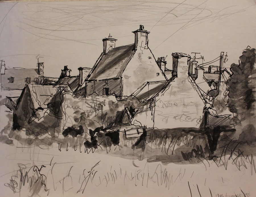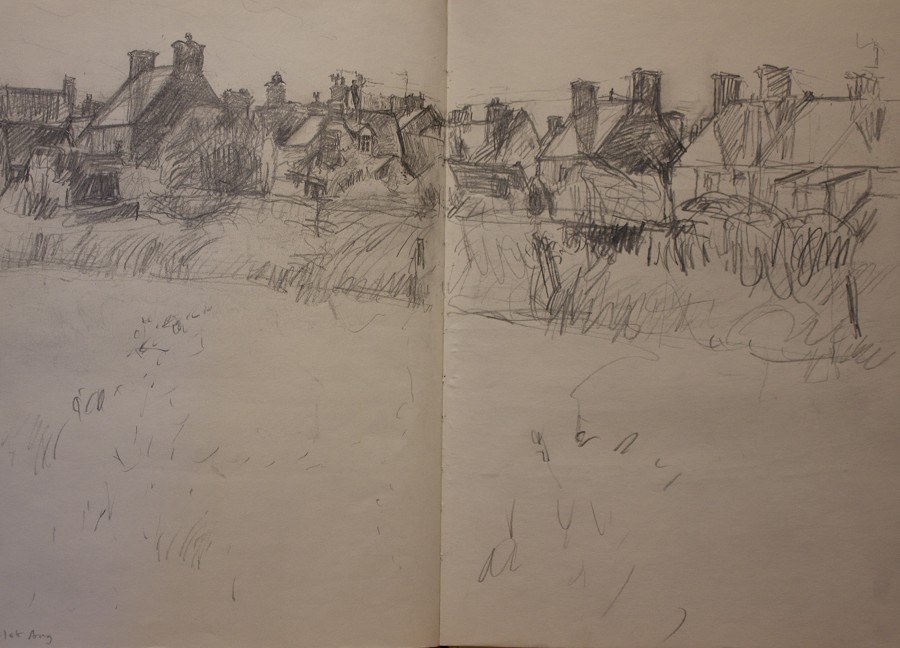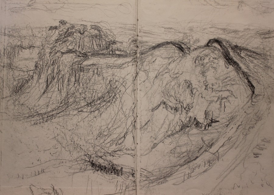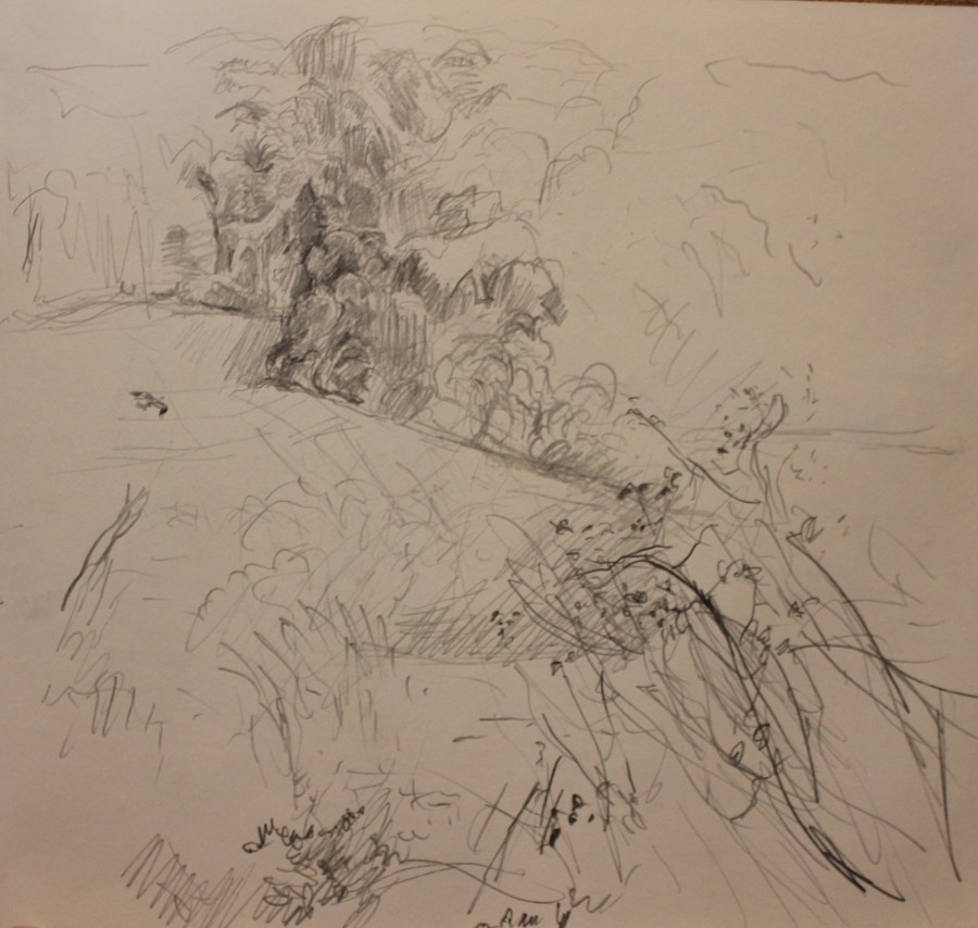 Few of my drawings are finished pieces in their own right, most are notes or mementos. Since my painting process amounts to explorational drawing in paint, I seldom make preliminary studies for them. But I continue to sketch, often at times of change or approaching new subject-matter. The activity is literally one of marking time.