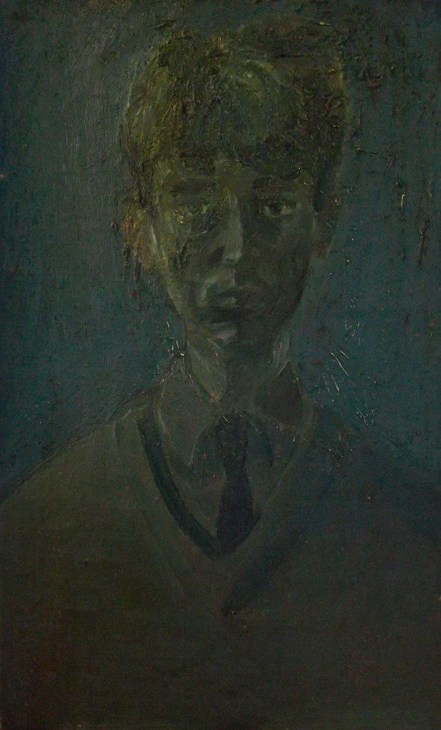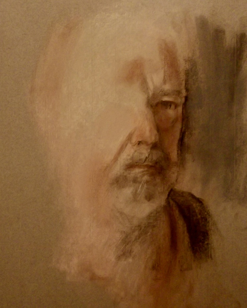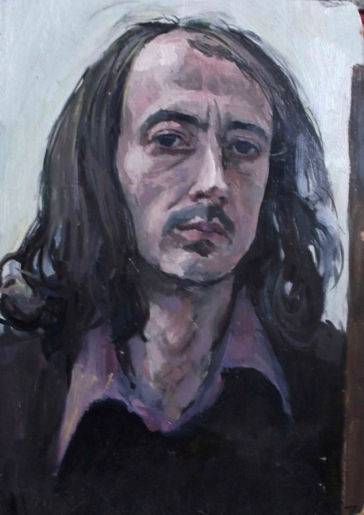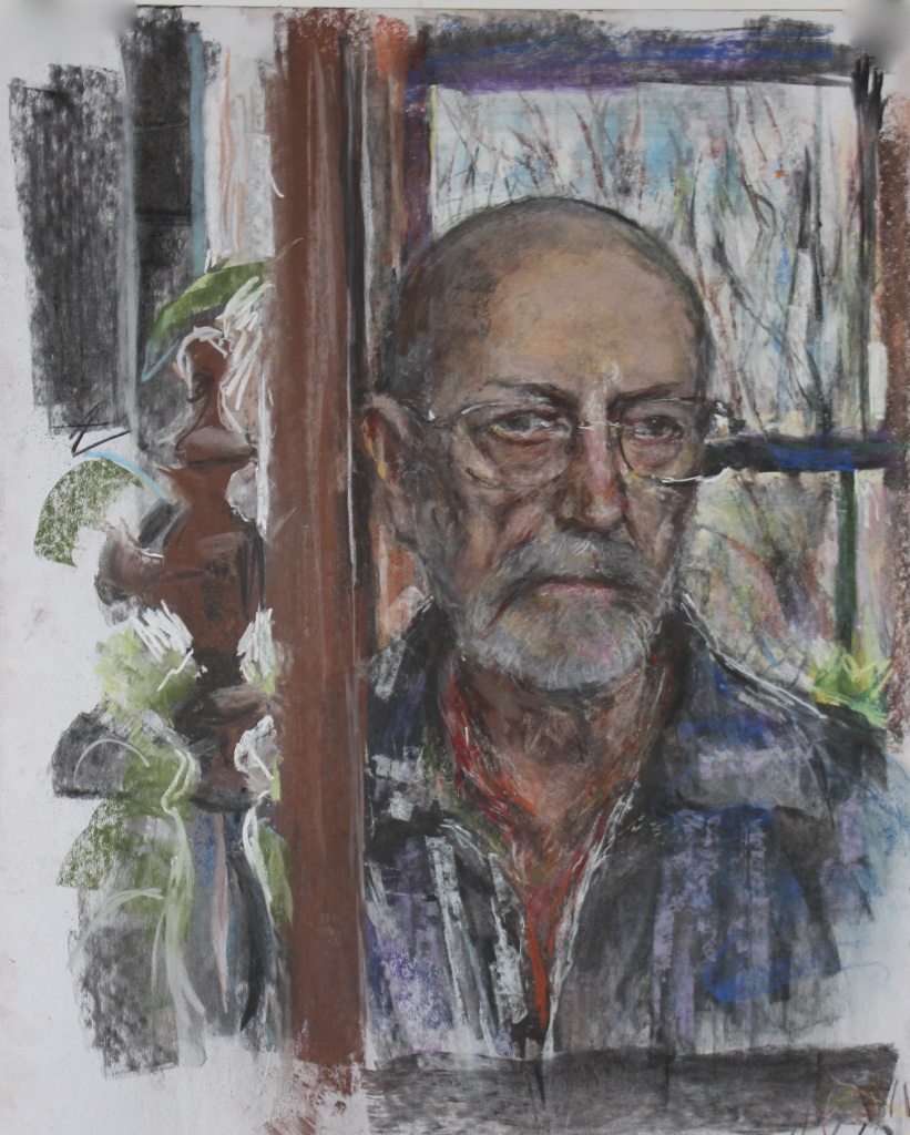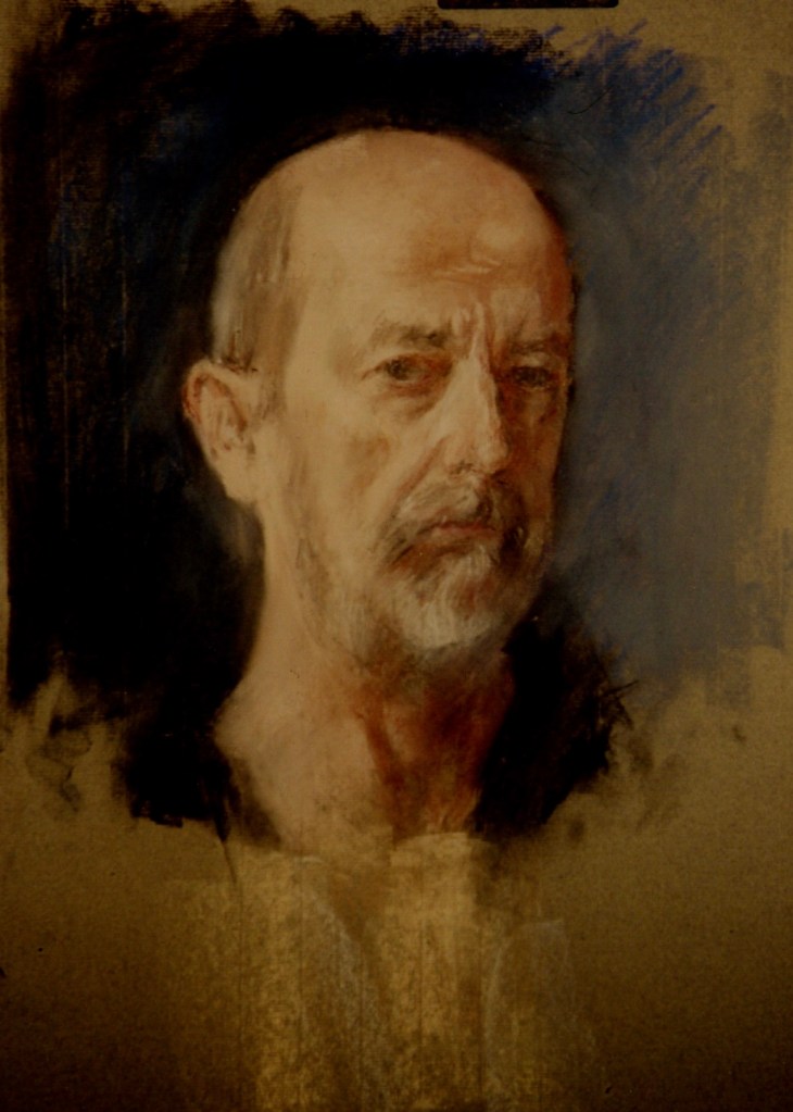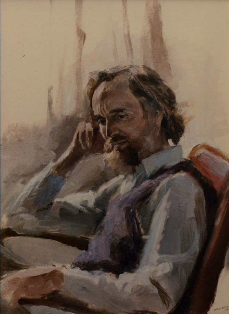 Like a lot of artists I’ve taken advantage of myself as a readily available subject, so there are quite a few of these. The earliest is from 1962. (See also https://johnnpearceartist.com/self-portrait-in-a-garden/ )