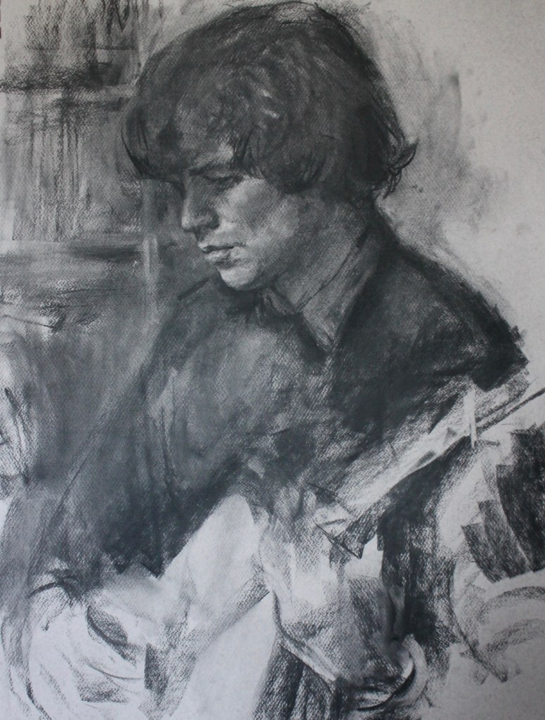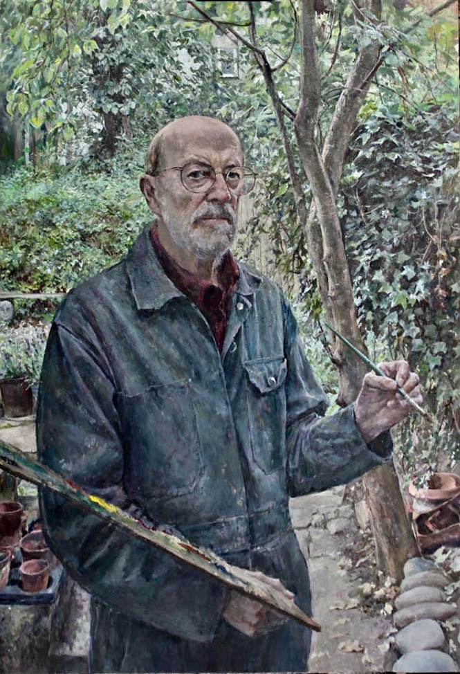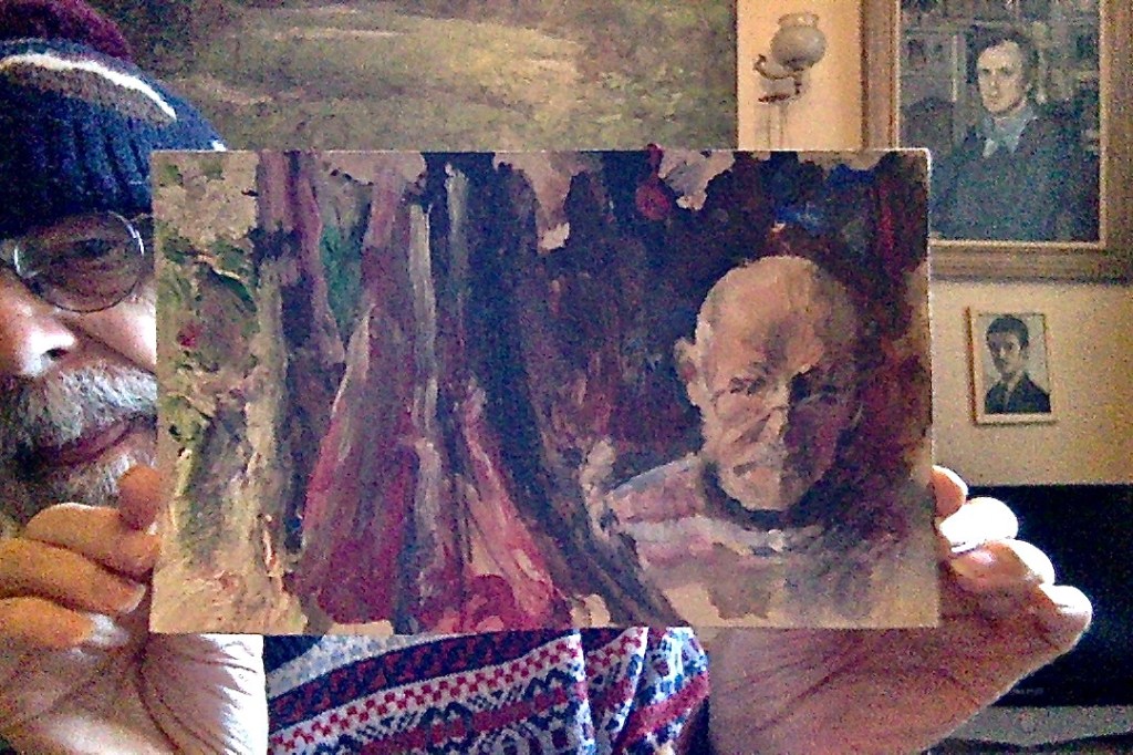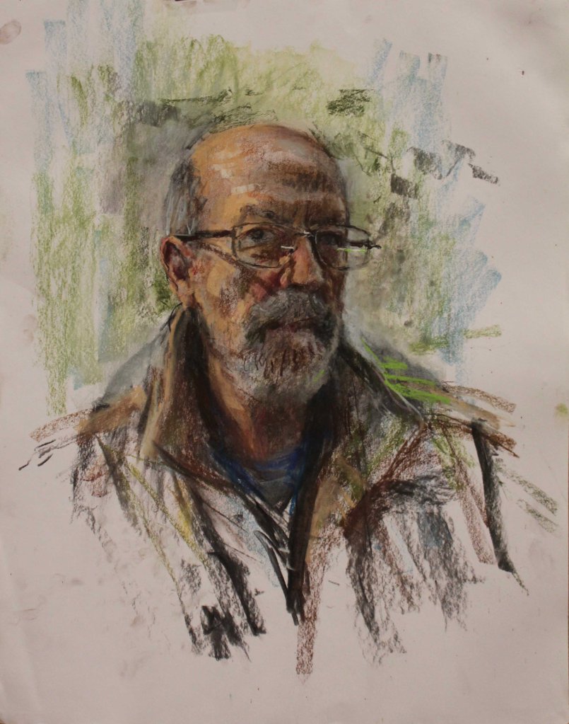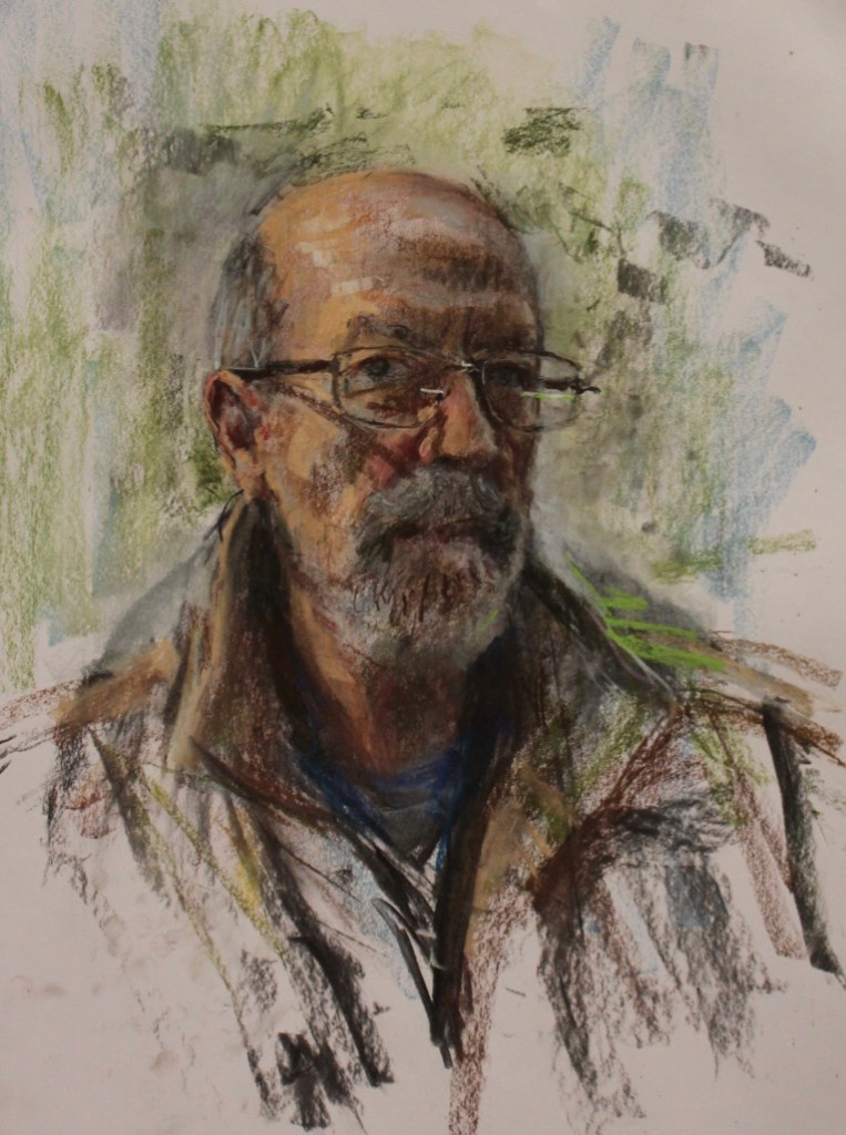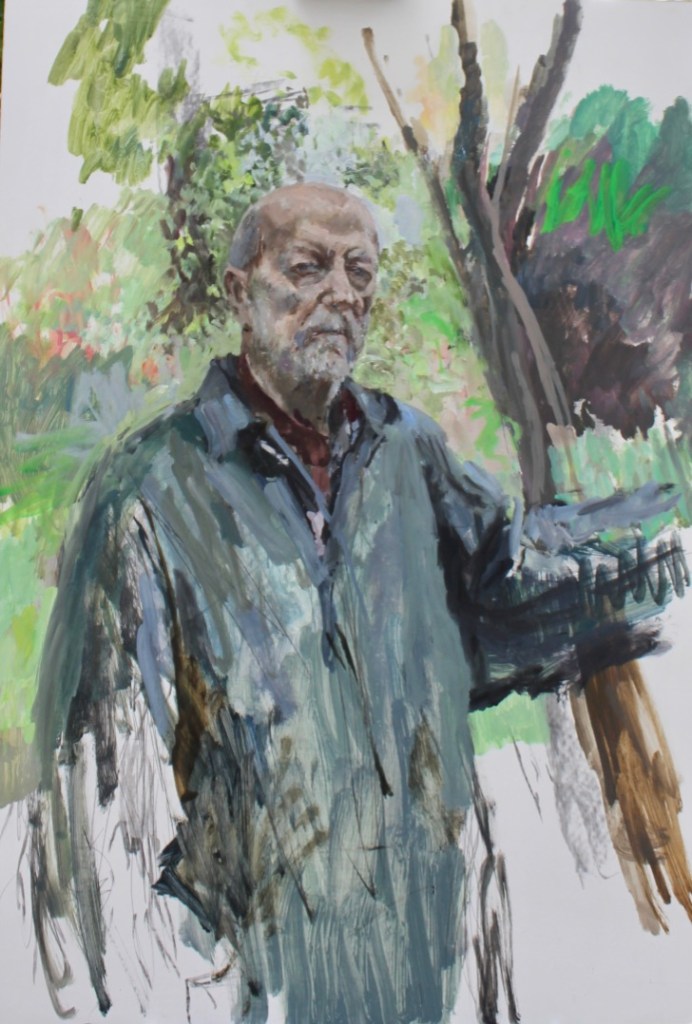 Like a lot of artists I’ve taken advantage of myself as a readily available subject, so there are quite a few of these. The earliest is from 1962. (See also https://johnnpearceartist.com/self-portrait-in-a-garden/ )