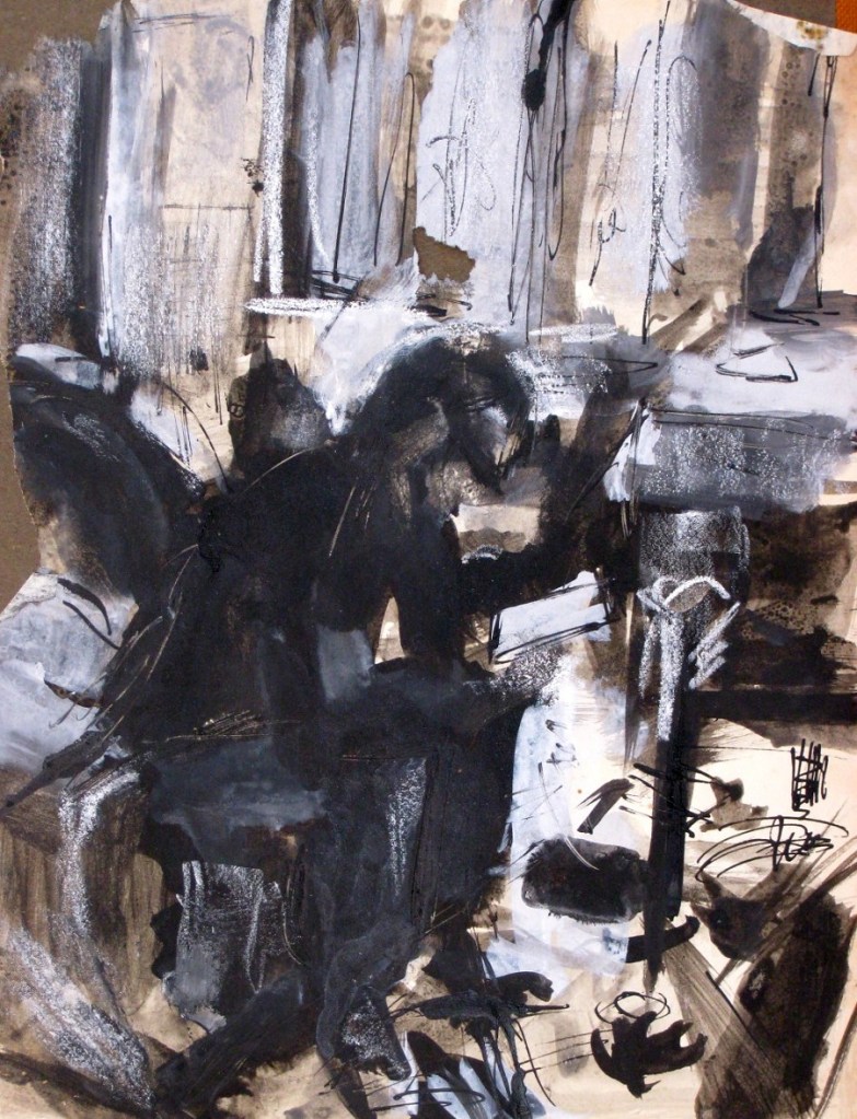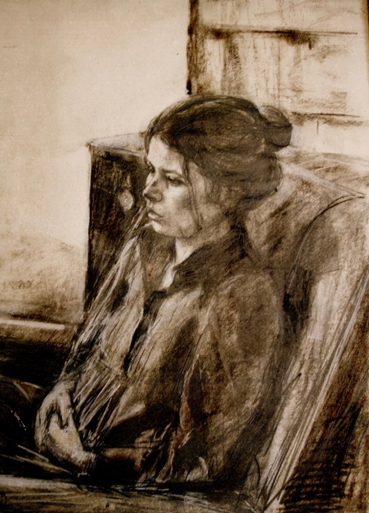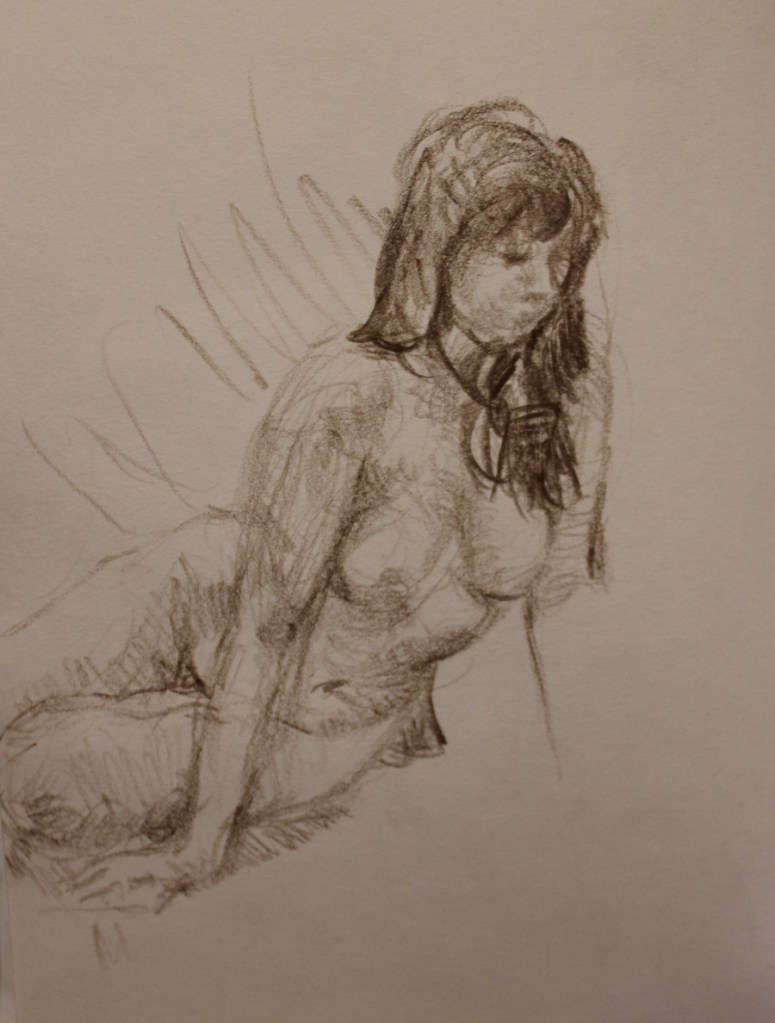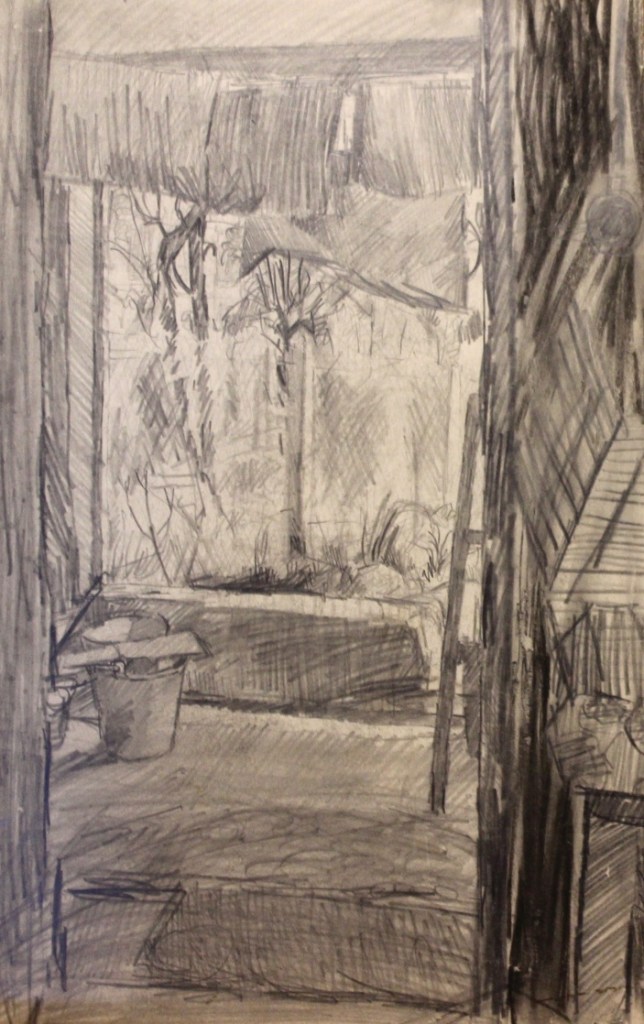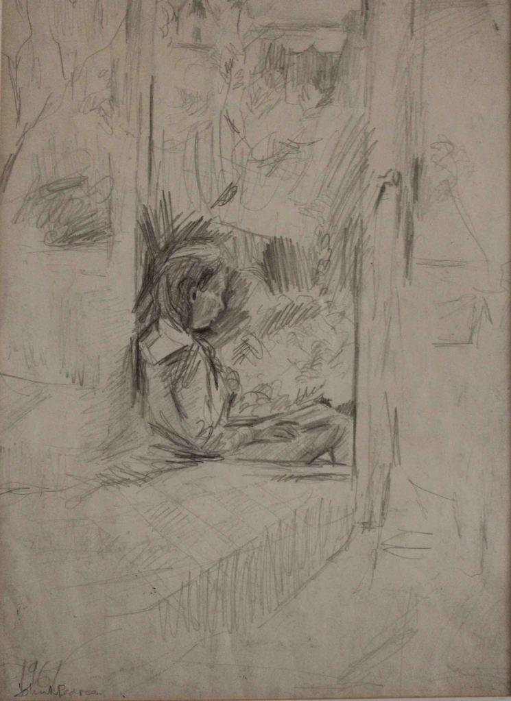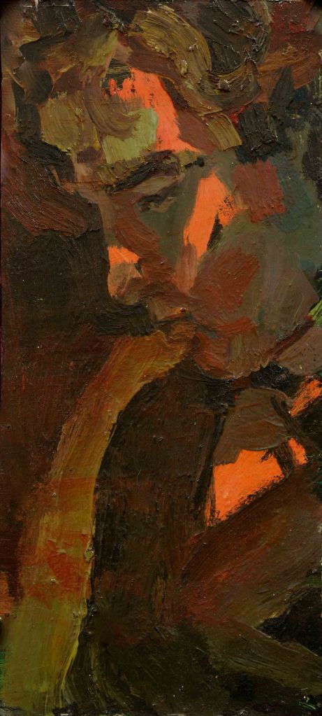 Like a lot of artists I’ve taken advantage of myself as a readily available subject, so there are quite a few of these. The earliest is from 1962. (See also https://johnnpearceartist.com/self-portrait-in-a-garden/ )
