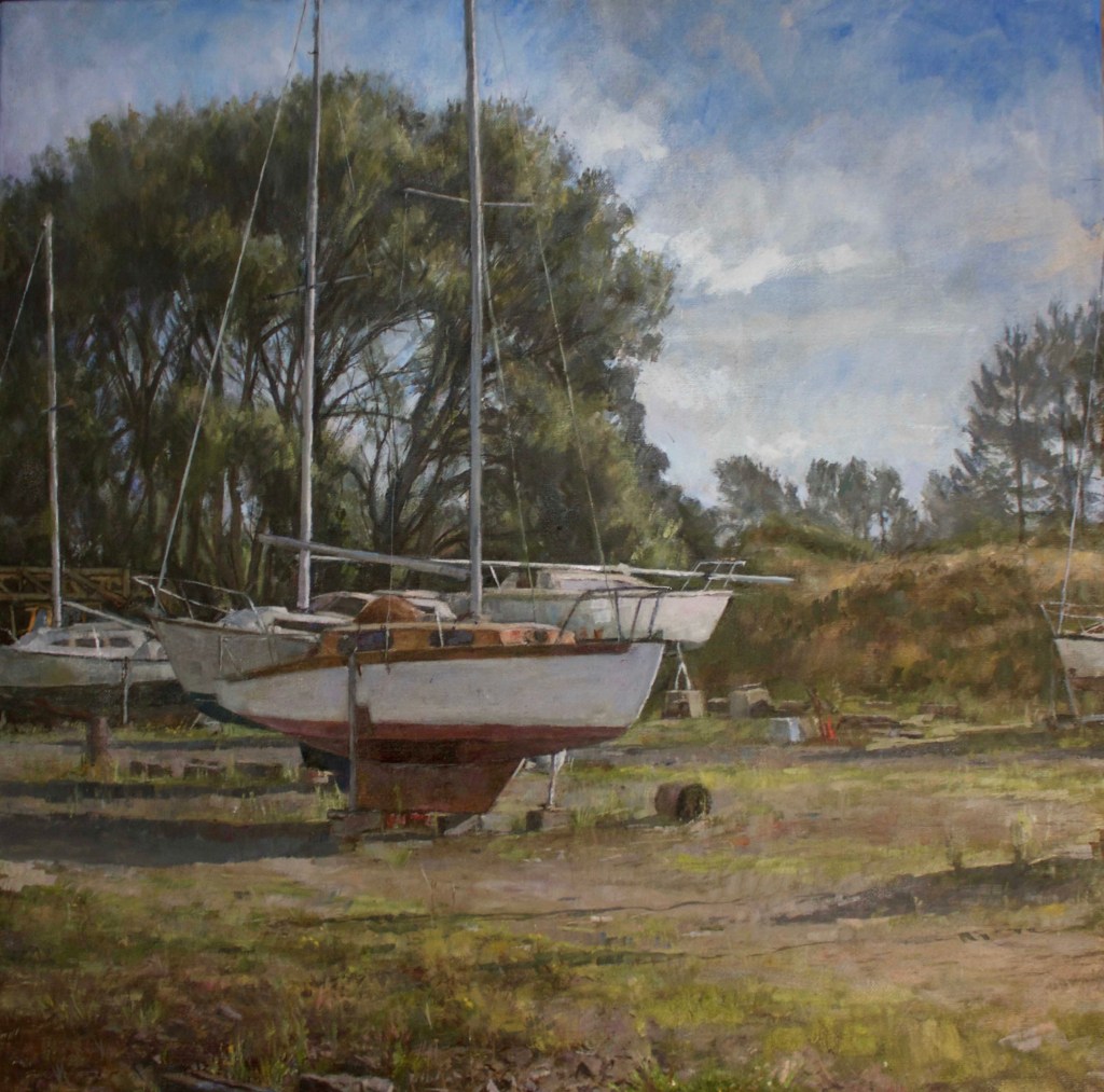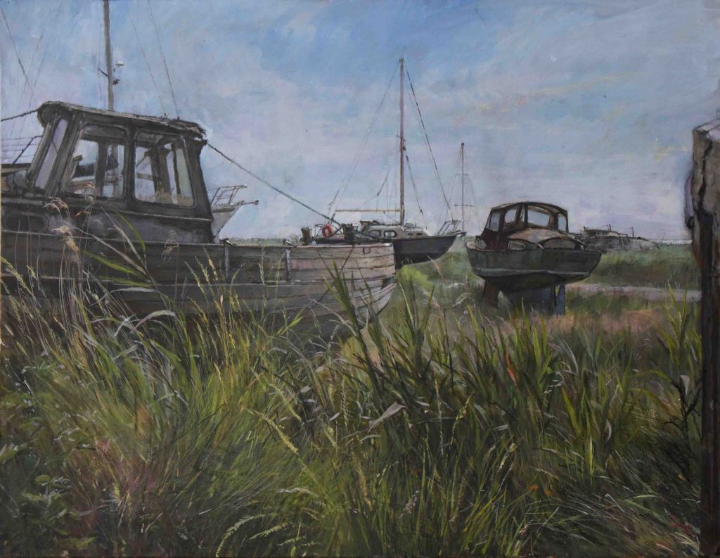After leaving college in 1964, like many would-be painters, I became a full-time teacher, but continued painting and exhibiting work. I found my impulse was to reject any self-conscious approach, be it modernist or traditional, and to make an obvious and recognisable response to what I saw, sometimes, admittedly, becoming a bit conventional. But finding oneself able to paint at all can be rewarding, particularly if people respond by buying one’s work, and, apart from the value of “keeping one’s hand in”, one does also also question what one is doing as a painter, and why. Painting itself asserts its own imperatives, sometimes mysterious or seemingly arbitrary, and becomes more absorbing, intense and difficult.